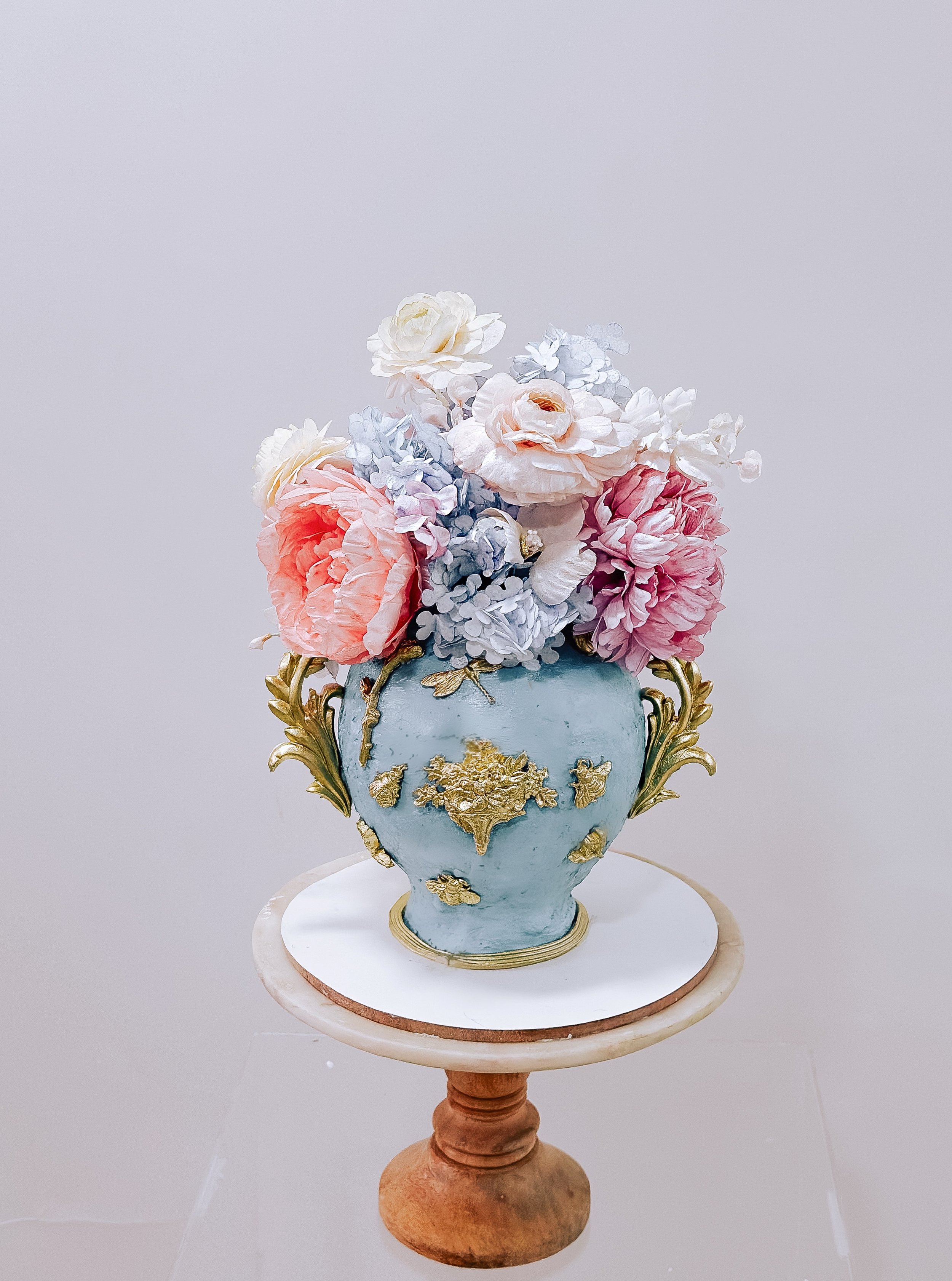 VASO EM CHOCOLATE E FLORES EM PAPEL ARROZ